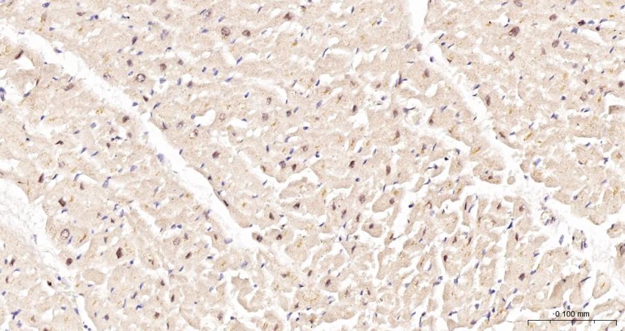 Paraformaldehyde-fixed, paraffin embedded Human Heart; Antigen retrieval by boiling in sodium citrate buffer (pH6.0) for 15 min; The section was incubated with HIF1AN?Monoclonal Antibody, Unconjugated (bsm-61905R) at 1:200 overnight at 4°C, followed by conjugation to the bs-0295G-HRP and DAB (C-0010) staining.
