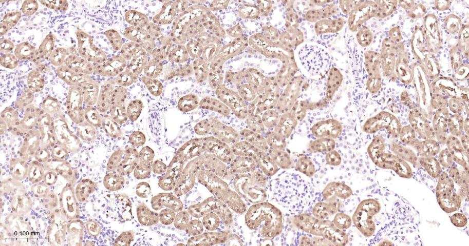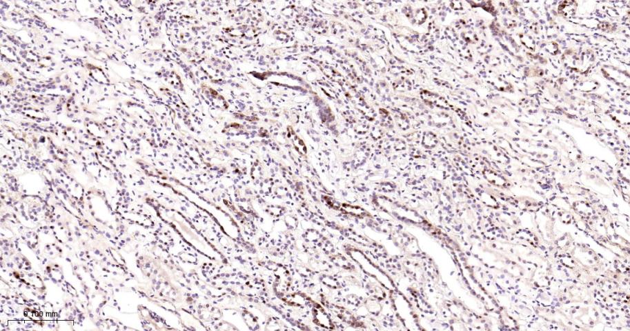 Paraformaldehyde-fixed, paraffin embedded Human Kidney; Antigen retrieval by boiling in sodium citrate buffer (pH6.0) for 15 min; Antibody incubation with COMT Monoclonal Antibody, Unconjugated(bsm-61936R) at 1:200 overnight at 4°C, followed by conjugation to the bs-0295G-HRP and DAB (C-0010) staining.