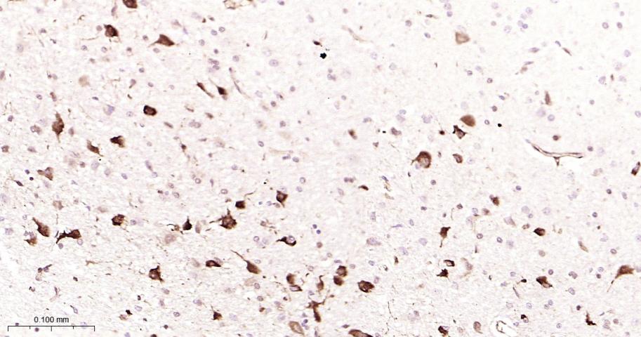 Paraformaldehyde-fixed, paraffin embedded Rat Cerebrum; Antigen retrieval by boiling in sodium citrate buffer (pH6.0) for 15 min; Antibody incubation with COMT Monoclonal Antibody, Unconjugated(bsm-61936R) at 1:200 overnight at 4°C, followed by conjugation to the bs-0295G-HRP and DAB (C-0010) staining.