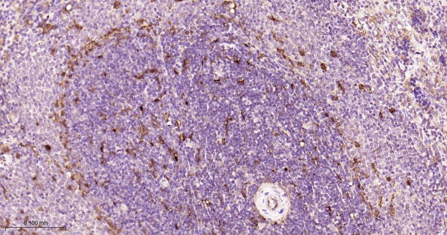 Paraformaldehyde-fixed, paraffin embedded Rat Spleen; Antigen retrieval by boiling in sodium citrate buffer (pH6.0) for 15 min; Antibody incubation with COMT Monoclonal Antibody, Unconjugated(bsm-61936R) at 1:200 overnight at 4°C, followed by conjugation to the bs-0295G-HRP and DAB (C-0010) staining.