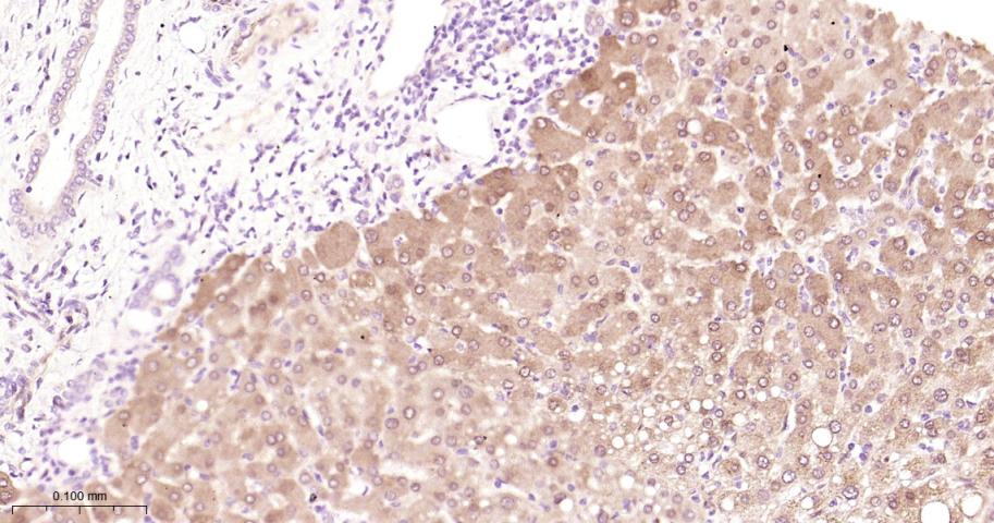 Paraformaldehyde-fixed, paraffin embedded Rat Liver; Antigen retrieval by boiling in sodium citrate buffer (pH6.0) for 15 min; Antibody incubation with COMT Monoclonal Antibody, Unconjugated(bsm-61936R) at 1:200 overnight at 4°C, followed by conjugation to the bs-0295G-HRP and DAB (C-0010) staining.