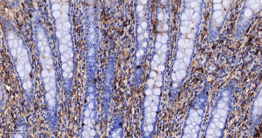 Paraformaldehyde-fixed, paraffin embedded Human Colon; Antigen retrieval by boiling in sodium citrate buffer (pH6.0) for 15 min; The section was incubated with METAP2 Monoclonal Antibody, Unconjugated (bsm-61939R) at 1:200 overnight at 4°C, followed by conjugation to the bs-0295G-HRP and DAB (C-0010) staining.