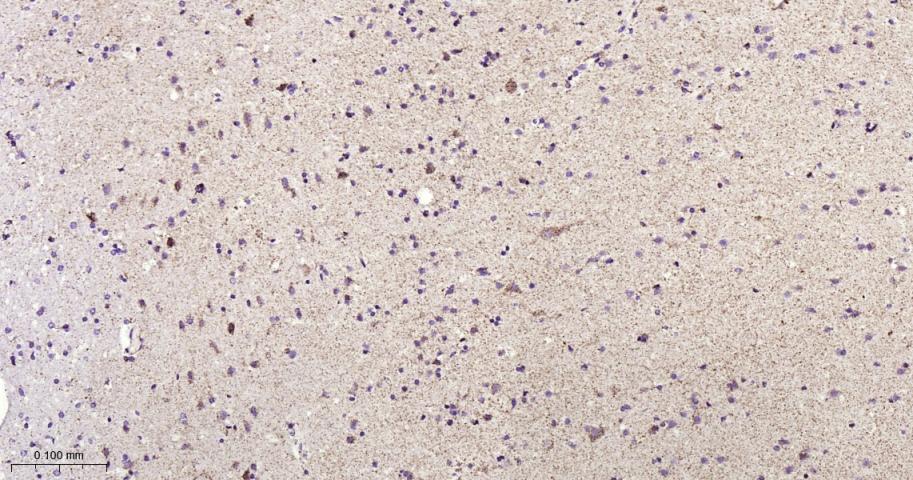 Paraformaldehyde-fixed, paraffin embedded Rat Cerebrum; Antigen retrieval by boiling in sodium citrate buffer (pH6.0) for 15 min; Antibody incubation with Aconitase 2 Monoclonal Antibody, Unconjugated(bsm-61944R) at 1:200 overnight at 4°C, followed by conjugation to the bs-0295G-HRP and DAB (C-0010) staining.