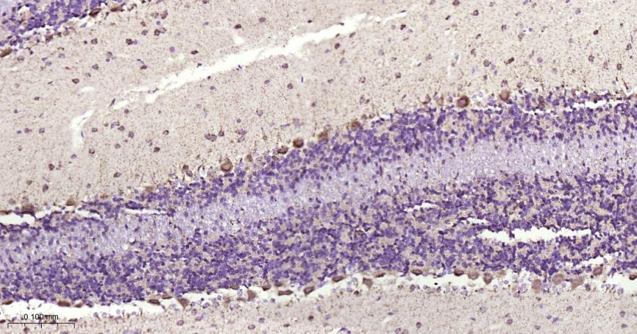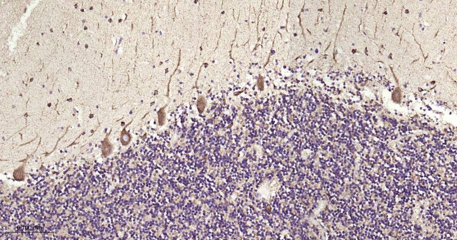 Paraformaldehyde-fixed, paraffin embedded Rat Cerebellum; Antigen retrieval by boiling in sodium citrate buffer (pH6.0) for 15 min; Antibody incubation with Aconitase 2 Monoclonal Antibody, Unconjugated(bsm-61944R) at 1:200 overnight at 4°C, followed by conjugation to the bs-0295G-HRP and DAB (C-0010) staining.