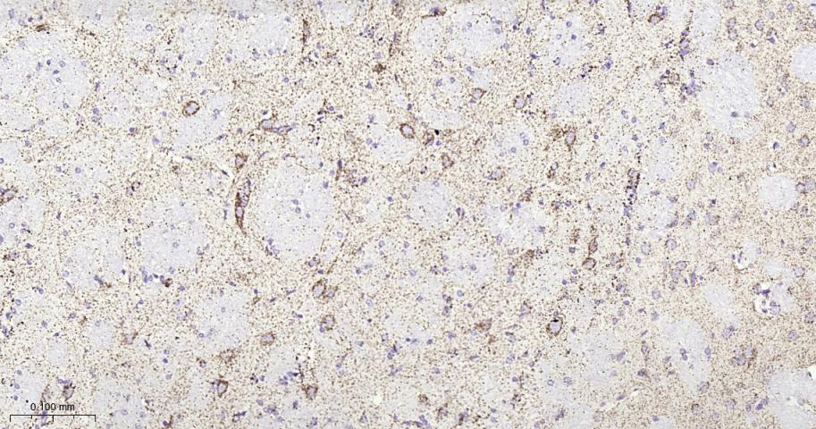 Paraformaldehyde-fixed, paraffin embedded Human Cerebrum; Antigen retrieval by boiling in sodium citrate buffer (pH6.0) for 15 min; Antibody incubation with Aconitase 2 Monoclonal Antibody, Unconjugated(bsm-61944R) at 1:200 overnight at 4°C, followed by conjugation to the bs-0295G-HRP and DAB (C-0010) staining.