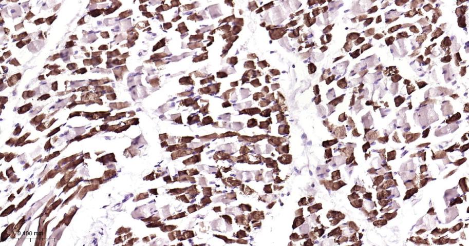 Paraformaldehyde-fixed, paraffin embedded Human Skeletal muscle; Antigen retrieval by boiling in sodium citrate buffer (pH6.0) for 15 min; Antibody incubation with PEN2 Monoclonal Antibody, Unconjugated(bsm-61979R) at 1:200 overnight at 4°C, followed by conjugation to the bs-0295G-HRP and DAB (C-0010) staining.