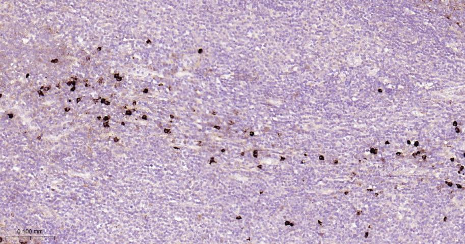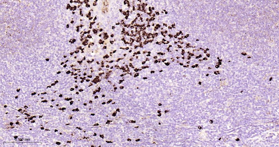 Paraformaldehyde-fixed, paraffin embedded Human Tonsil; Antigen retrieval by boiling in sodium citrate buffer (pH6.0) for 15 min; The section was incubated with Human IgG2 Monoclonal Antibody, Unconjugated (bsm-61986R) at 1:1000 overnight at 4°C, followed by conjugation to the bs-0295G-HRP and DAB (C-0010) staining.
