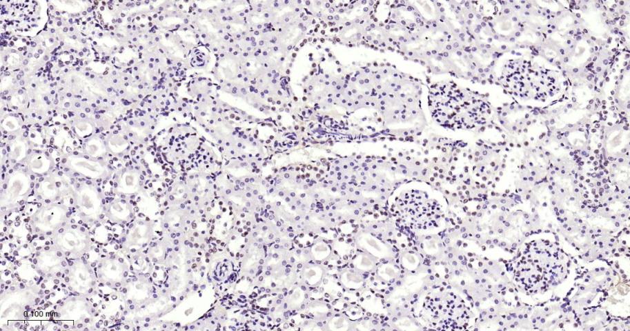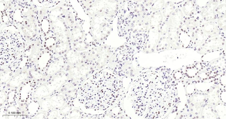 Paraformaldehyde-fixed, paraffin embedded Rat Kidney; Antigen retrieval by boiling in sodium citrate buffer (pH6.0) for 15 min; Antibody incubation with METTL3 Monoclonal Antibody, Unconjugated(bsm-62004R) at 1:200 overnight at 4°C, followed by conjugation to the bs-0295G-HRP and DAB (C-0010) staining.