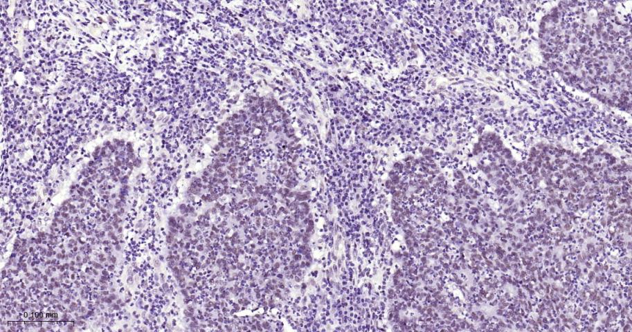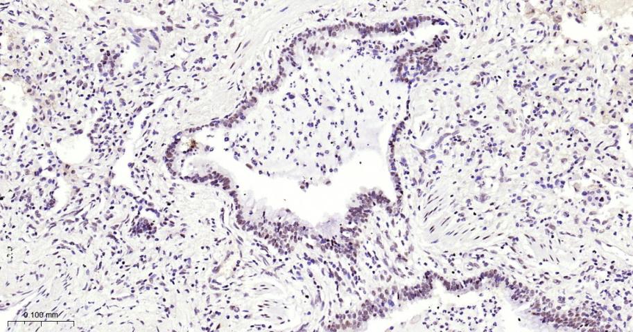 Paraformaldehyde-fixed, paraffin embedded Human Lung Cancer; Antigen retrieval by boiling in sodium citrate buffer (pH6.0) for 15 min; Antibody incubation with METTL3 Monoclonal Antibody, Unconjugated(bsm-62004R) at 1:200 overnight at 4°C, followed by conjugation to the bs-0295G-HRP and DAB (C-0010) staining.