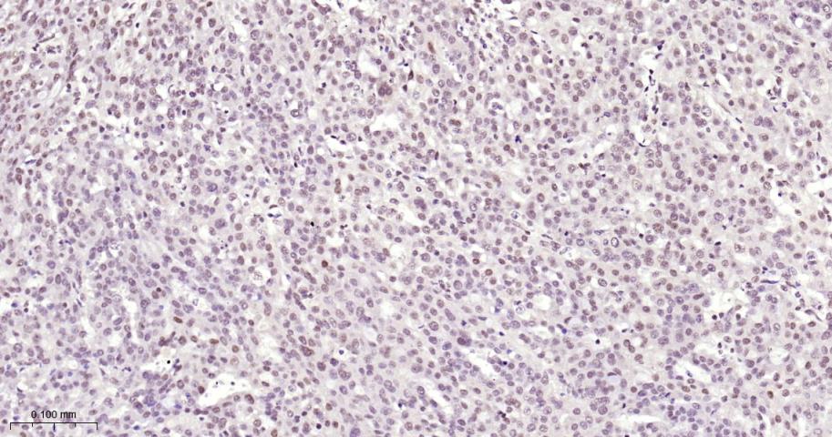 Paraformaldehyde-fixed, paraffin embedded Human Ovarian Cancer; Antigen retrieval by boiling in sodium citrate buffer (pH6.0) for 15 min; Antibody incubation with METTL3 Monoclonal Antibody, Unconjugated(bsm-62004R) at 1:200 overnight at 4°C, followed by conjugation to the bs-0295G-HRP and DAB (C-0010) staining.