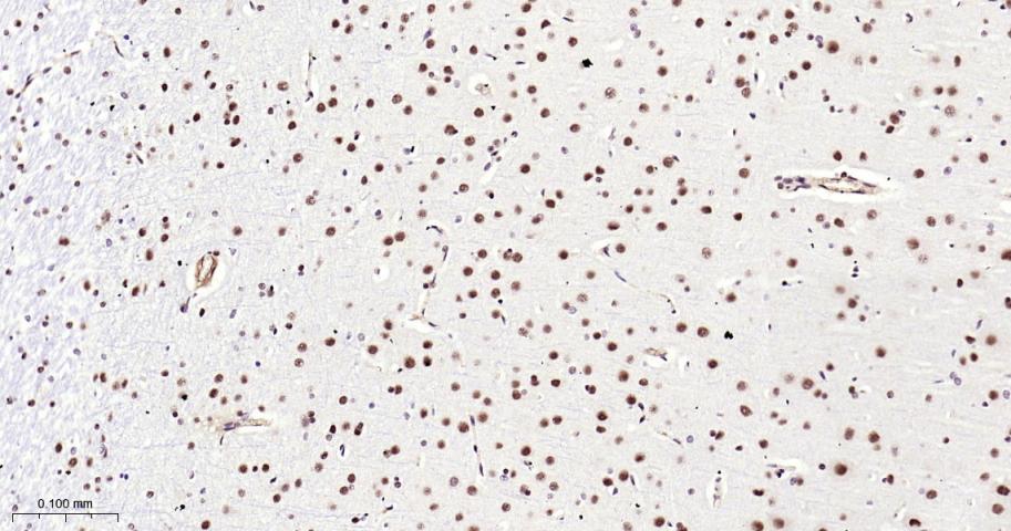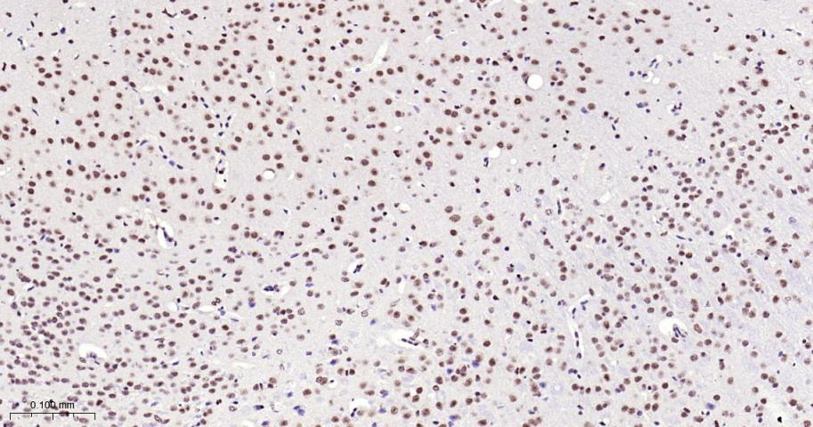 Paraformaldehyde-fixed, paraffin embedded Rat Cerebrum; Antigen retrieval by boiling in sodium citrate buffer (pH6.0) for 15 min; Antibody incubation with METTL3 Monoclonal Antibody, Unconjugated(bsm-62004R) at 1:200 overnight at 4°C, followed by conjugation to the bs-0295G-HRP and DAB (C-0010) staining.