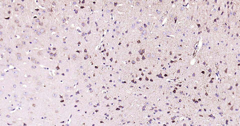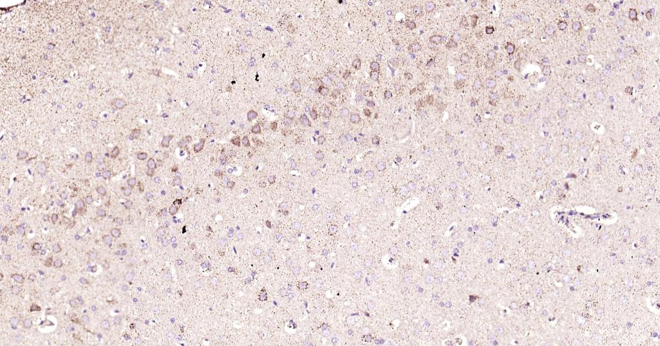 Paraformaldehyde-fixed, paraffin embedded Rat Cerebrum; Antigen retrieval by boiling in sodium citrate buffer (pH6.0) for 15 min; Antibody incubation with ABAT?Monoclonal Antibody, Unconjugated(bsm-62069R) at 1:200 overnight at 4°C, followed by conjugation to the bs-0295G-HRP and DAB (C-0010) staining.