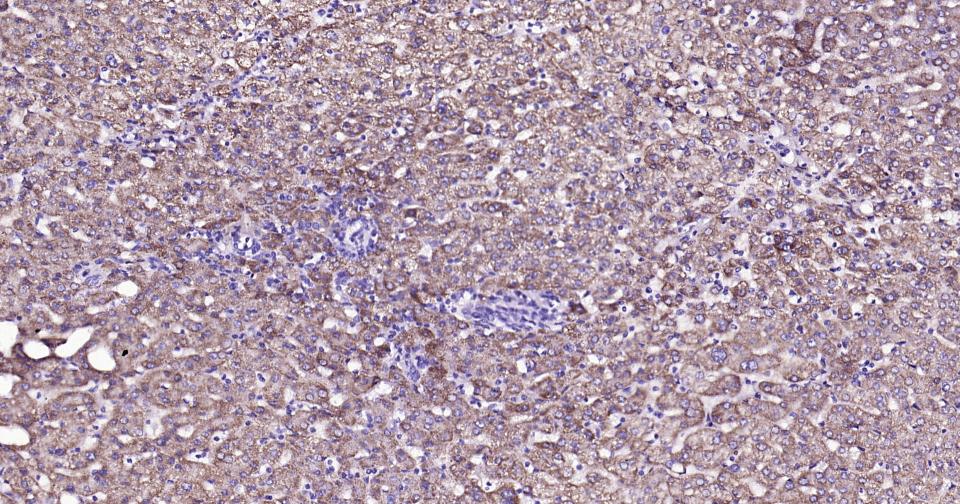 Paraformaldehyde-fixed, paraffin embedded Human Liver; Antigen retrieval by boiling in sodium citrate buffer (pH6.0) for 15 min; Antibody incubation with ABAT?Monoclonal Antibody, Unconjugated(bsm-62069R) at 1:200 overnight at 4°C, followed by conjugation to the bs-0295G-HRP and DAB (C-0010) staining.