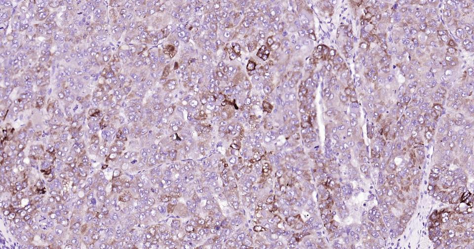 Paraformaldehyde-fixed, paraffin embedded Human Liver Cancer; Antigen retrieval by boiling in sodium citrate buffer (pH6.0) for 15 min; Antibody incubation with ABAT?Monoclonal Antibody, Unconjugated(bsm-62069R) at 1:200 overnight at 4°C, followed by conjugation to the bs-0295G-HRP and DAB (C-0010) staining.