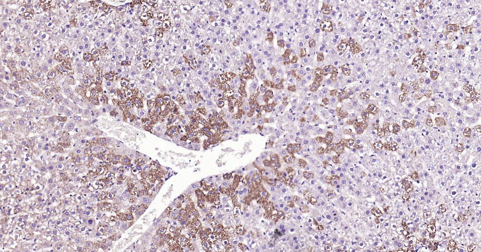 Paraformaldehyde-fixed, paraffin embedded Rat Liver; Antigen retrieval by boiling in sodium citrate buffer (pH6.0) for 15 min; Antibody incubation with ABAT?Monoclonal Antibody, Unconjugated(bsm-62069R) at 1:200 overnight at 4°C, followed by conjugation to the bs-0295G-HRP and DAB (C-0010) staining.
