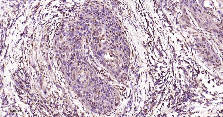 Paraformaldehyde-fixed, paraffin embedded Human Cervical Cancer; Antigen retrieval by boiling in sodium citrate buffer (pH6.0) for 15 min; Antibody incubation with PSMA2 Monoclonal Antibody, Unconjugated(bsm-62091R) at 1:200 overnight at 4°C, followed by conjugation to the bs-0295G-HRP and DAB (C-0010) staining.
