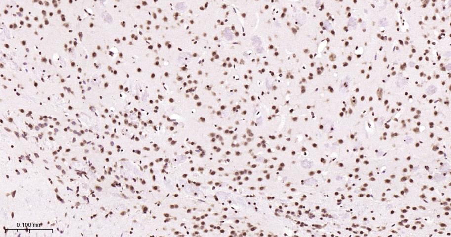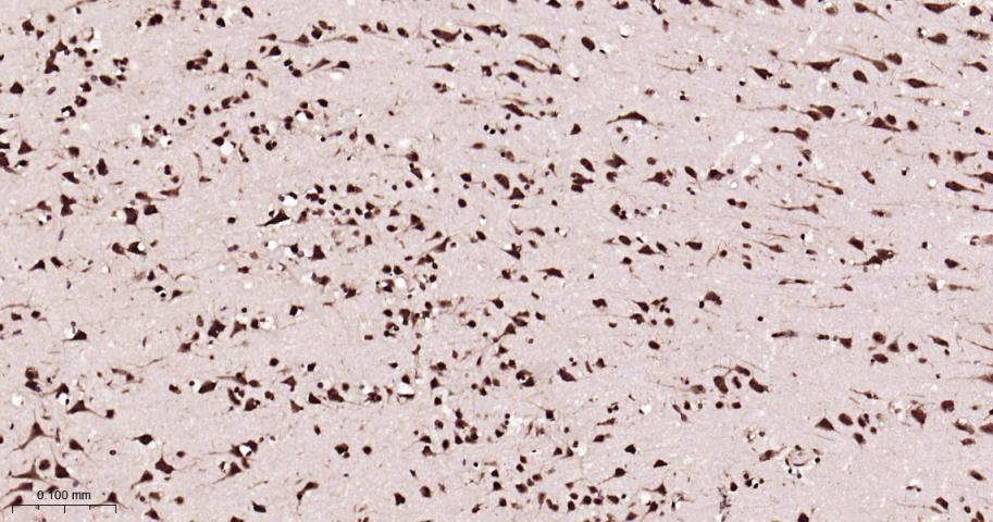 Paraformaldehyde-fixed, paraffin embedded Human Cerebrum; Antigen retrieval by boiling in sodium citrate buffer (pH6.0) for 15 min; The section was incubated with ALYREF Monoclonal Antibody, Unconjugated (bsm-62100R) at 1:200 overnight at 4°C, followed by conjugation to the bs-0295G-HRP and DAB (C-0010) staining.