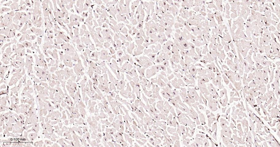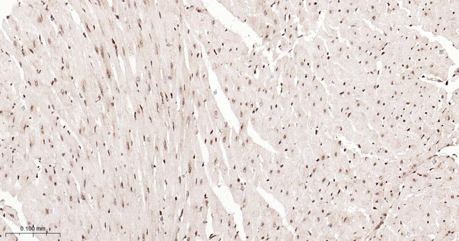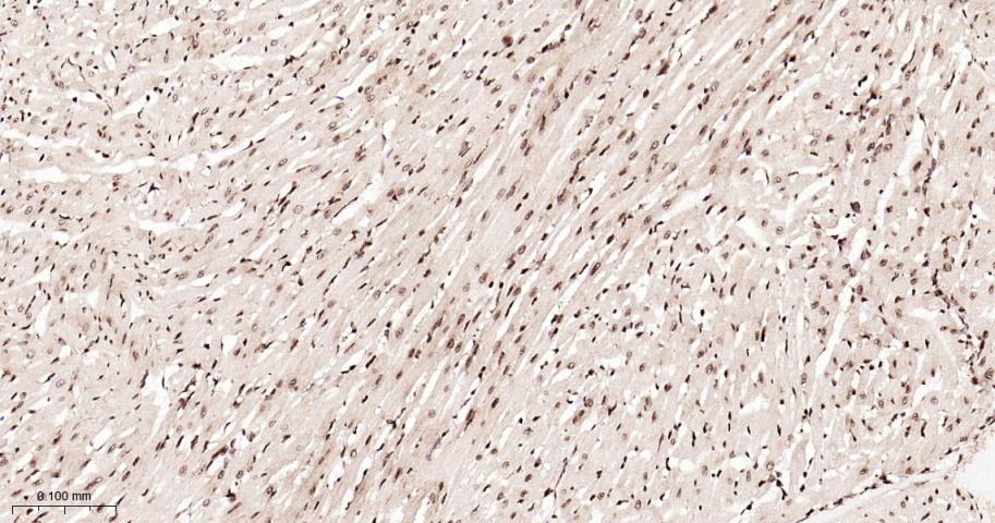 Paraformaldehyde-fixed, paraffin embedded Rat Heart; Antigen retrieval by boiling in sodium citrate buffer (pH6.0) for 15 min; The section was incubated with ALYREF Monoclonal Antibody, Unconjugated (bsm-62100R) at 1:200 overnight at 4°C, followed by conjugation to the bs-0295G-HRP and DAB (C-0010) staining.