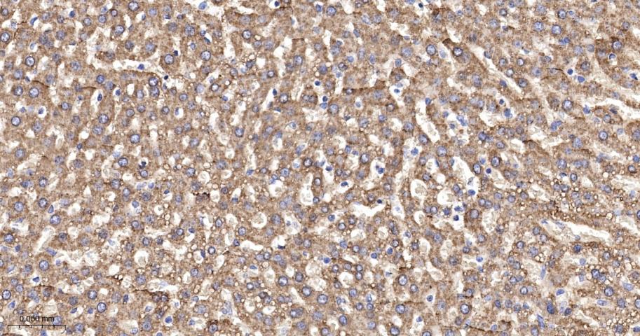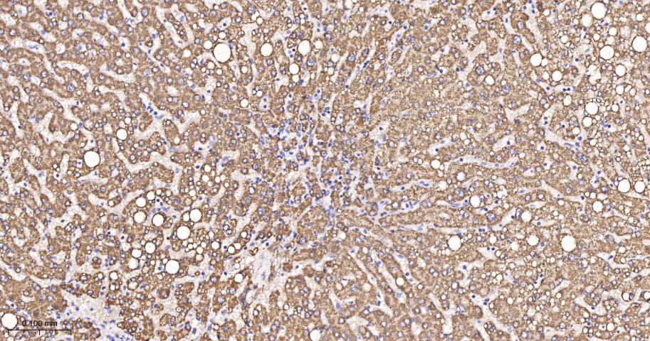Paraformaldehyde-fixed, paraffin embedded Mouse Liver; Antigen retrieval by boiling in sodium citrate buffer (pH6.0) for 15 min; The section was incubated with Glutamate dehydrogenase 1 Monoclonal Antibody, Unconjugated (bsm-62249R) at 1:200 overnight at 4°C, followed by conjugation to the bs-0295G-HRP and DAB (C-0010) staining.