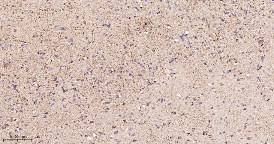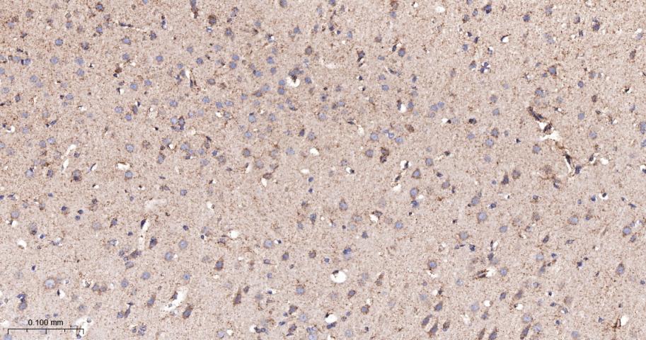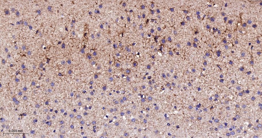 Paraformaldehyde-fixed, paraffin embedded Rat Cerebrum; Antigen retrieval by boiling in sodium citrate buffer (pH6.0) for 15 min; The section was incubated with Glutamate dehydrogenase 1 Monoclonal Antibody, Unconjugated (bsm-62249R) at 1:200 overnight at 4°C, followed by conjugation to the bs-0295G-HRP and DAB (C-0010) staining.