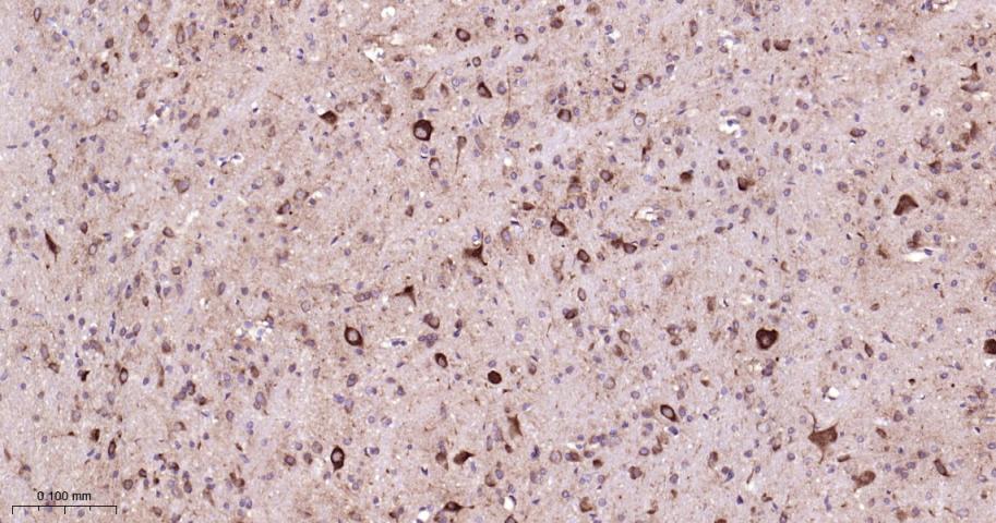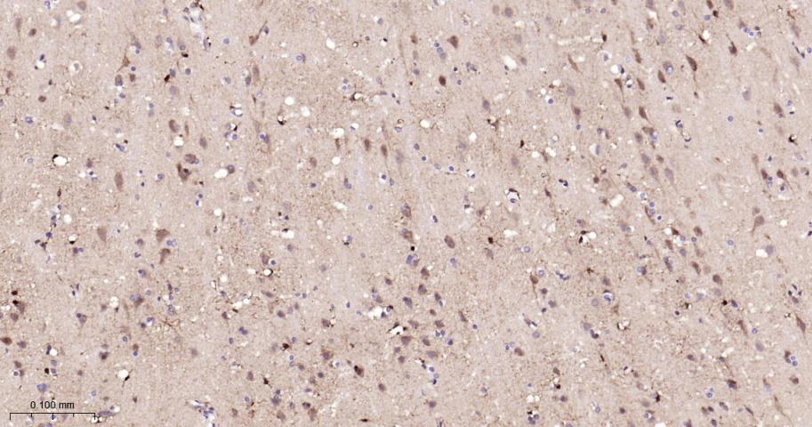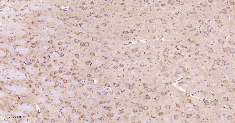 Paraformaldehyde-fixed, paraffin embedded Rat Cerebrum; Antigen retrieval by boiling in sodium citrate buffer (pH6.0) for 15 min; Antibody incubation with PSAP Monoclonal Antibody, Unconjugated(bsm-62251R) at 1:200 overnight at 4°C, followed by conjugation to the bs-0295G-HRP and DAB (C-0010) staining.