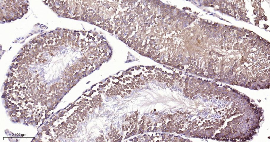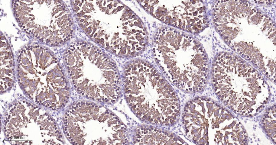 Paraformaldehyde-fixed, paraffin embedded Mouse Testicles; Antigen retrieval by boiling in sodium citrate buffer (pH6.0) for 15 min; Antibody incubation with PSAP Monoclonal Antibody, Unconjugated(bsm-62251R) at 1:200 overnight at 4°C, followed by conjugation to the bs-0295G-HRP and DAB (C-0010) staining.