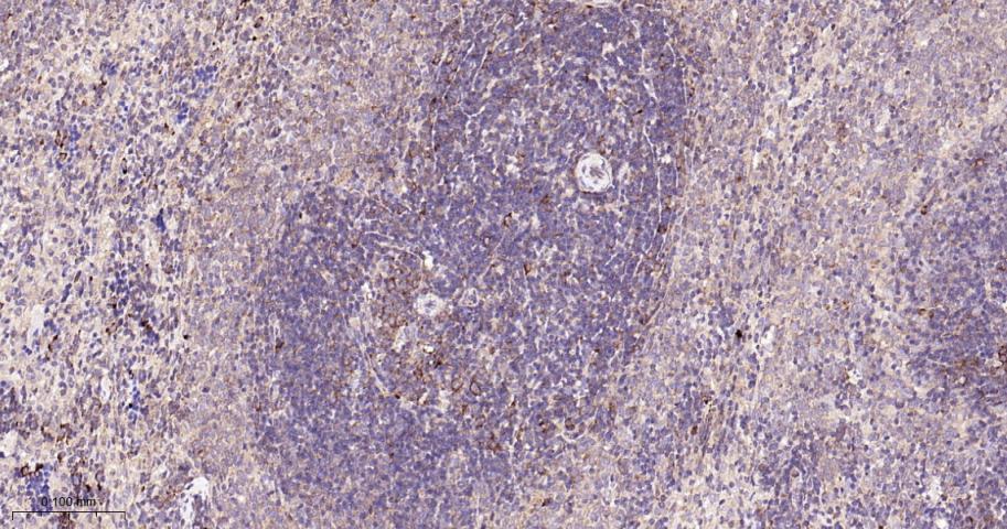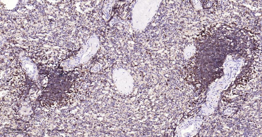 Paraformaldehyde-fixed, paraffin embedded Rat Spleen; Antigen retrieval by boiling in sodium citrate buffer (pH6.0) for 15 min; Antibody incubation with PSAP Monoclonal Antibody, Unconjugated(bsm-62251R) at 1:200 overnight at 4°C, followed by conjugation to the bs-0295G-HRP and DAB (C-0010) staining.
