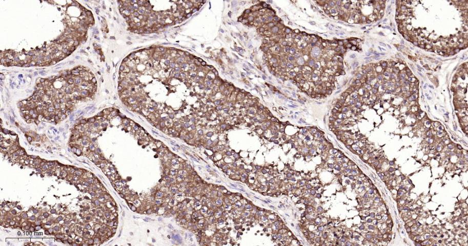 Paraformaldehyde-fixed, paraffin embedded Human Testicles; Antigen retrieval by boiling in sodium citrate buffer (pH6.0) for 15 min; Antibody incubation with PSAP Monoclonal Antibody, Unconjugated(bsm-62251R) at 1:200 overnight at 4°C, followed by conjugation to the bs-0295G-HRP and DAB (C-0010) staining.