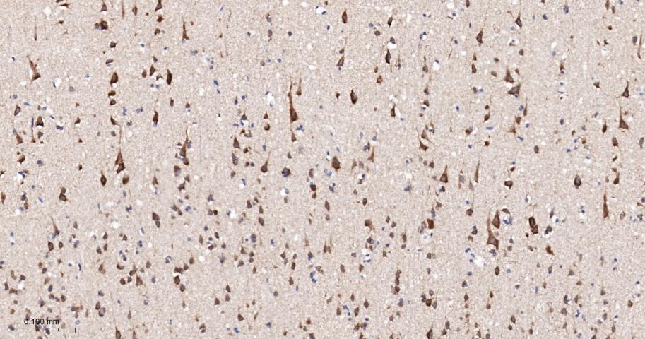 Paraformaldehyde-fixed, paraffin embedded Human Cerebrum; Antigen retrieval by boiling in sodium citrate buffer (pH6.0) for 15 min; The section was incubated with Arginase2 Monoclonal Antibody, Unconjugated (bsm-62356R) at 1:200 overnight at 4°C, followed by conjugation to the bs-0295G-HRP and DAB (C-0010) staining.