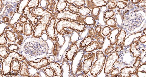 Paraformaldehyde-fixed, paraffin embedded Rat Kidney; Antigen retrieval by boiling in sodium citrate buffer (pH6.0) for 15 min; Antibody incubation ACSL4 Monoclonal Antibody, Unconjugated(bsm-62432R) at 1:200 overnight at 4°C, followed by conjugation to the bs-0295G-HRP and DAB (C-0010) staining.