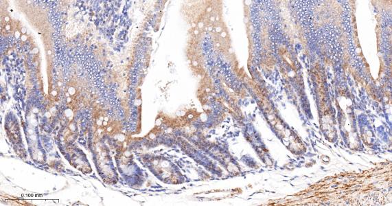 Paraformaldehyde-fixed, paraffin embedded Mouse Duodenum; Antigen retrieval by boiling in sodium citrate buffer (pH6.0) for 15 min; Antibody incubation ACSL4 Monoclonal Antibody, Unconjugated(bsm-62432R) at 1:200 overnight at 4°C, followed by conjugation to the bs-0295G-HRP and DAB (C-0010) staining.