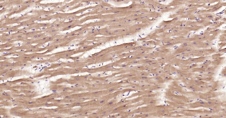 Paraformaldehyde-fixed, paraffin embedded Human Heart; Antigen retrieval by boiling in sodium citrate buffer (pH6.0) for 15 min; Antibody incubation with OPG? Monoclonal Antibody, Unconjugated(bsm-62482R) at 1:200 overnight at 4°C, followed by conjugation to the bs-0295G-HRP and DAB (C-0010) staining and DAB (C-0010) staining.