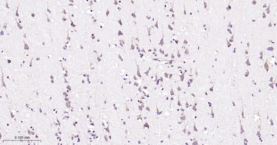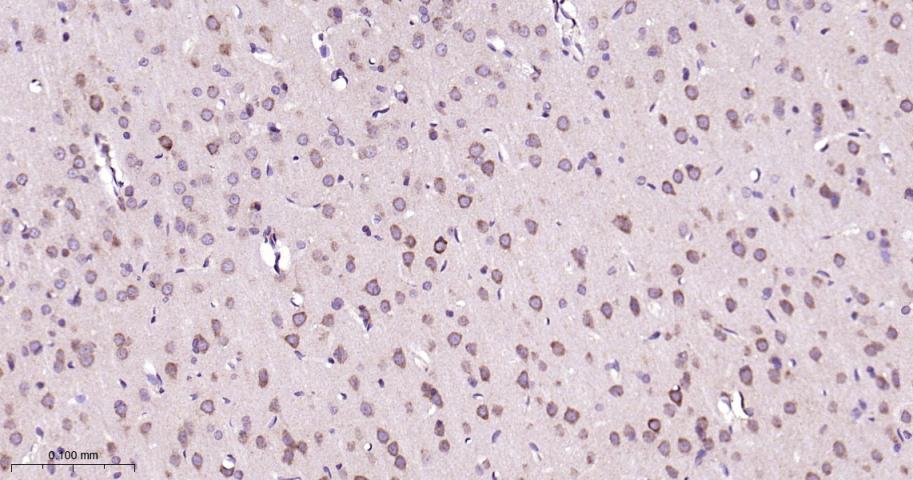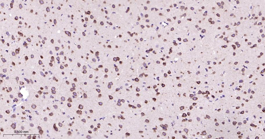 Paraformaldehyde-fixed, paraffin embedded Rat Cerebrum; Antigen retrieval by boiling in sodium citrate buffer (pH6.0) for 15 min; The section was incubated with ERp19 Monoclonal Antibody, Unconjugated (bsm-62538R) at 1:200 overnight at 4°C, followed by conjugation to the bs-0295G-HRP and DAB (C-0010) staining.