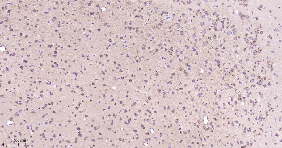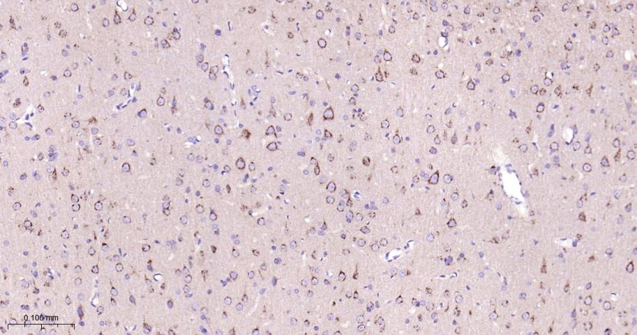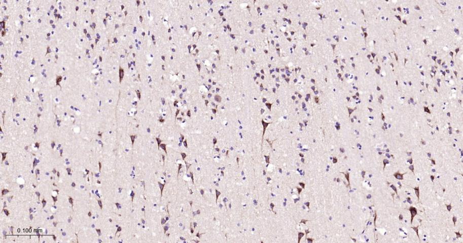 Paraformaldehyde-fixed, paraffin embedded Rat Cerebrum; Antigen retrieval by boiling in sodium citrate buffer (pH6.0) for 15 min; The section was incubated with Syntaxin 16 Recombinant Monoclonal Antibody, Unconjugated (bsm-62548R) at 1:200 overnight at 4°C, followed by conjugation to the bs-0295G-HRP and DAB (C-0010) staining.
