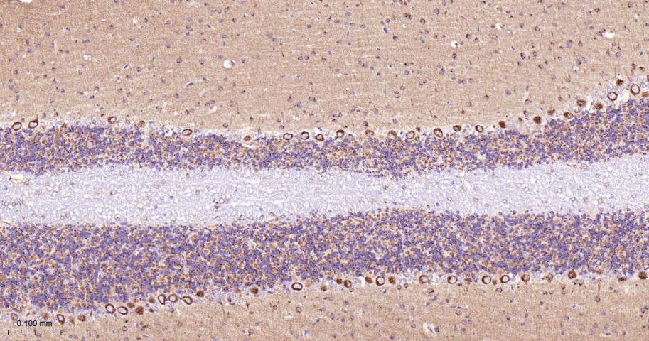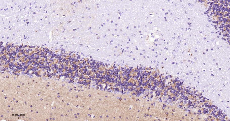 Paraformaldehyde-fixed, paraffin embedded Mouse Cerebellum; Antigen retrieval by boiling in sodium citrate buffer (pH6.0) for 15 min; The section was incubated with Syntaxin 16 Recombinant Monoclonal Antibody, Unconjugated (bsm-62548R) at 1:200 overnight at 4°C, followed by conjugation to the bs-0295G-HRP and DAB (C-0010) staining.