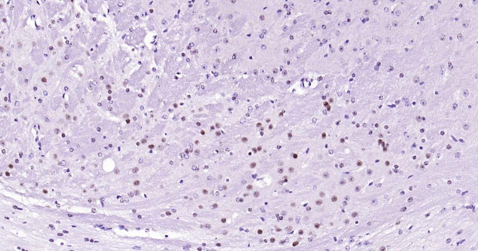 Paraformaldehyde-fixed, paraffin embedded Mouse Cerebrum; Antigen retrieval by boiling in sodium citrate buffer (pH6.0) for 15 min; Antibody incubation with Phospho-c-Jun (Thr91+Thr93) Monoclonal Antibody, Unconjugated(bsm-62758R) at 1:200 overnight at 4°C, followed by conjugation to the bs-0295G-HRP and DAB (C-0010) staining.