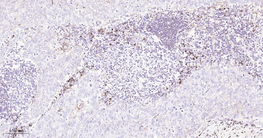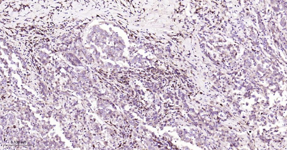 Paraformaldehyde-fixed, paraffin embedded Human Lung Cancer; Antigen retrieval by boiling in sodium citrate buffer (pH6.0) for 15 min; The section was incubated with IKK beta Monoclonal Antibody, Unconjugated (bsm-62794R) at 1:200 overnight at 4°C, followed by conjugation to the bs-0295G-HRP and DAB (C-0010) staining.