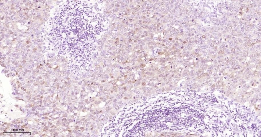 Paraformaldehyde-fixed, paraffin embedded Human Breast Cancer; Antigen retrieval by boiling in sodium citrate buffer (pH6.0) for 15 min; The section was incubated with Phospho-eIF4EBP1/2/3(Thr46/Thr46/Thr32) Monoclonal Antibody, Unconjugated (bsm-62853R) at 1:200 overnight at 4°C, followed by conjugation to the bs-0295G-HRP and DAB (C-0010) staining.