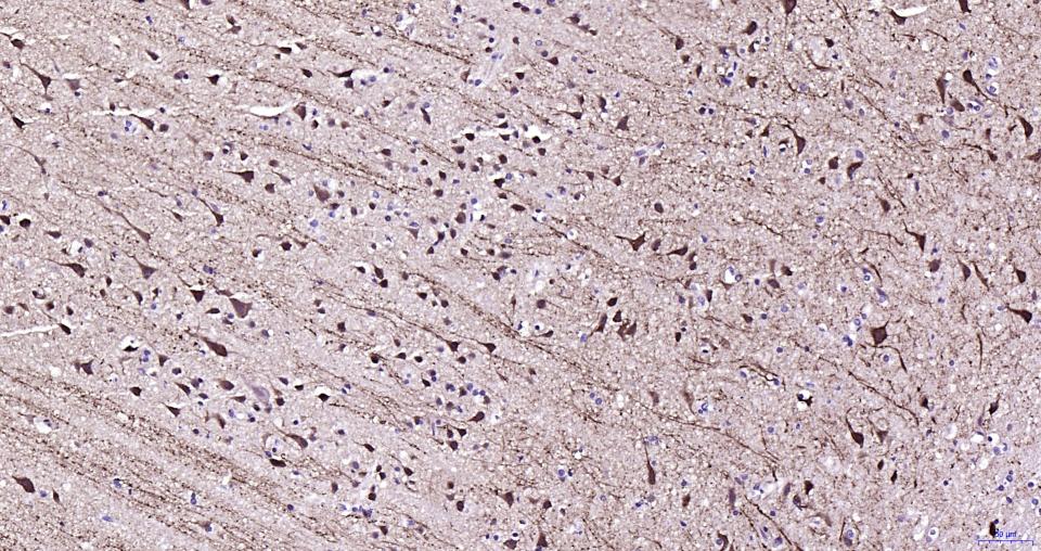 Paraformaldehyde-fixed, paraffin embedded Rat brain; Antigen retrieval by boiling in sodium citrate buffer (pH6.0) for 15 min; Antibody incubation with Phospho-MAP2 (Ser136) Monoclonal Antibody, Unconjugated (bsm-62863R) at 1:200 overnight at 4°C, followed by conjugation to the bs-0295G-HRP and DAB (C-0010) staining.