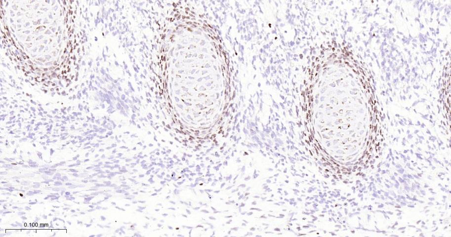 Paraformaldehyde-fixed, paraffin embedded Rat Embryo; Antigen retrieval by boiling in sodium citrate buffer (pH6.0) for 15 min; Antibody incubation with c-Maf Monoclonal Antibody, Unconjugated(bsm-62896R) at 1:200 overnight at 4°C, followed by conjugation to the bs-0295G-HRP and DAB (C-0010) staining.