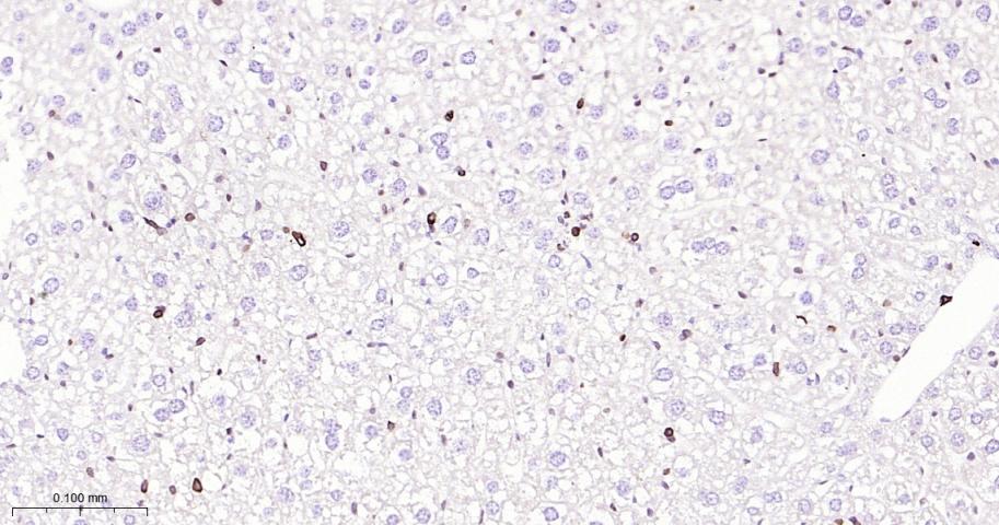 Paraformaldehyde-fixed, paraffin embedded Mouse Liver; Antigen retrieval by boiling in sodium citrate buffer (pH6.0) for 15 min; Antibody incubation with c-Maf Monoclonal Antibody, Unconjugated(bsm-62896R) at 1:200 overnight at 4°C, followed by conjugation to the bs-0295G-HRP and DAB (C-0010) staining.