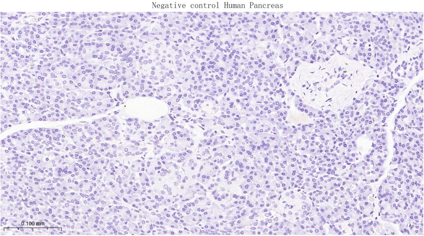 (Negative control)Paraformaldehyde-fixed, paraffin embedded Human Pancreas; Antigen retrieval by boiling in sodium citrate buffer (pH6.0) for 15 min; Antibody incubation with c-Maf Monoclonal Antibody, Unconjugated(bsm-62896R) at 1:200 overnight at 4°C, followed by conjugation to the bs-0295G-HRP and DAB (C-0010) staining.