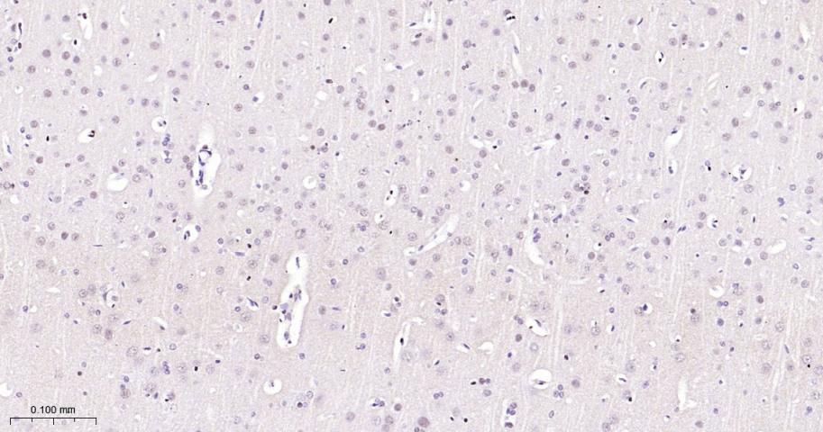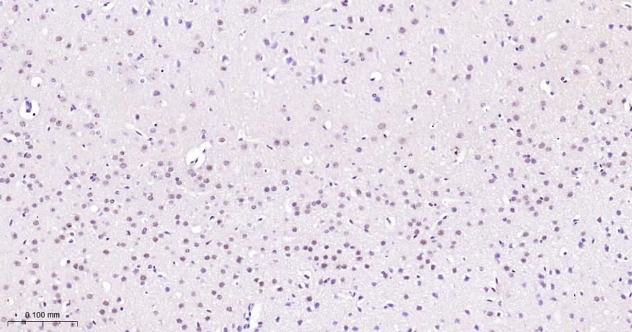 Paraformaldehyde-fixed, paraffin embedded Rat Cerebrum; Antigen retrieval by boiling in sodium citrate buffer (pH6.0) for 15 min; The section was incubated with Phospho-POLR2A (Ser5) Monoclonal Antibody, Unconjugated (bsm-62940R) at 1:200 overnight at 4°C, followed by conjugation to the bs-0295G-HRP and DAB (C-0010) staining.