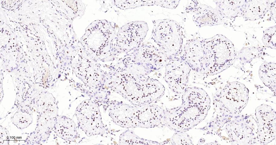 Paraformaldehyde-fixed, paraffin embedded Human Testicles; Antigen retrieval by boiling in sodium citrate buffer (pH6.0) for 15 min; The section was incubated with Phospho-POLR2A (Ser5) Monoclonal Antibody, Unconjugated (bsm-62940R) at 1:200 overnight at 4°C, followed by conjugation to the bs-0295G-HRP and DAB (C-0010) staining.