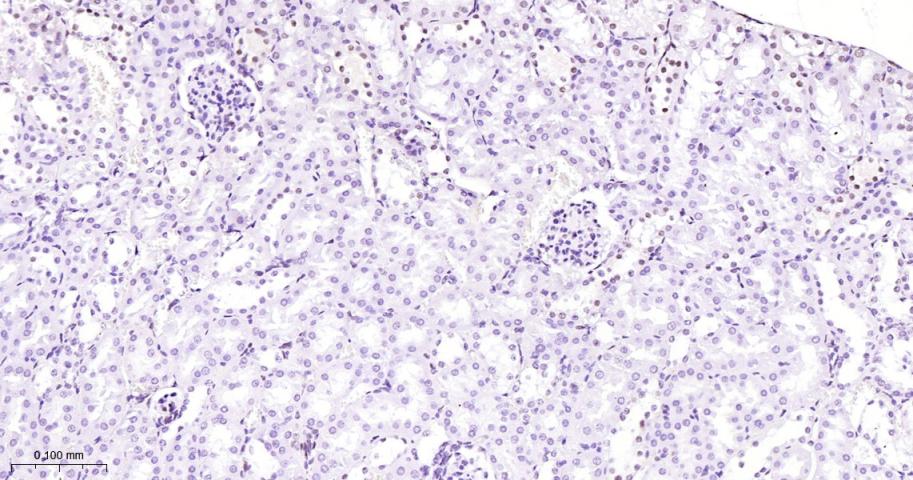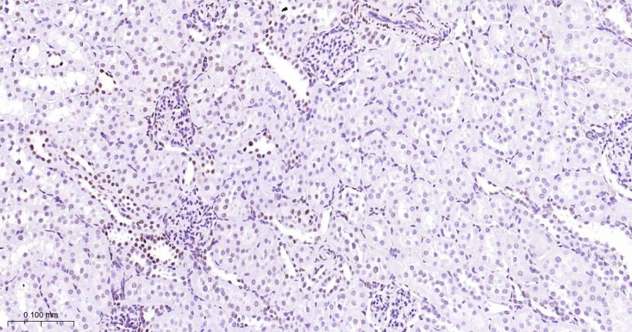 Paraformaldehyde-fixed, paraffin embedded Rat Kidney; Antigen retrieval by boiling in sodium citrate buffer (pH6.0) for 15 min; The section was incubated with Phospho-POLR2A (Ser5) Monoclonal Antibody, Unconjugated (bsm-62940R) at 1:200 overnight at 4°C, followed by conjugation to the bs-0295G-HRP and DAB (C-0010) staining.