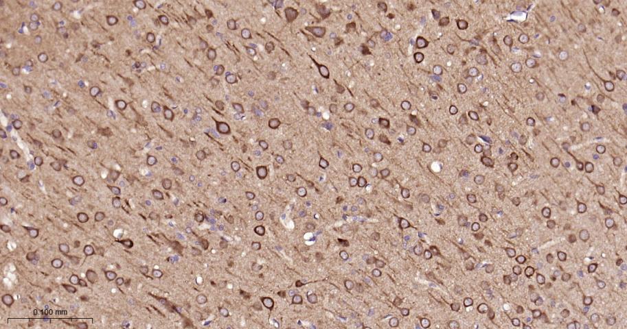 Paraformaldehyde-fixed, paraffin embedded Rat Cerebrum; Antigen retrieval by boiling in sodium citrate buffer (pH6.0) for 15 min; The section was incubated with PREPL Monoclonal Antibody, Unconjugated (bsm-62949R) at 1:200 overnight at 4°C, followed by conjugation to the bs-0295G-HRP and DAB (C-0010) staining.