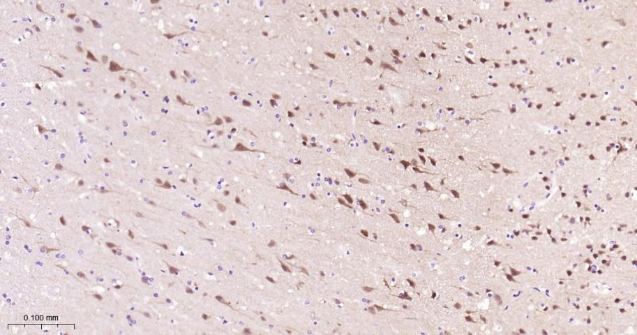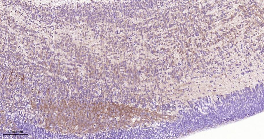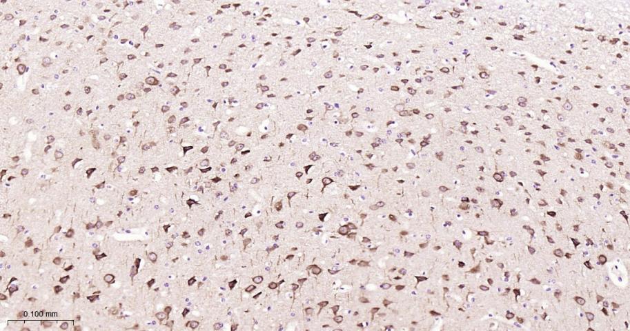 Paraformaldehyde-fixed, paraffin embedded Rat Cerebrum; Antigen retrieval by boiling in sodium citrate buffer (pH6.0) for 15 min; Antibody incubation with PREPL Monoclonal Antibody, Unconjugated(bsm-62950R) at 1:200 overnight at 4°C, followed by conjugation to the bs-0295G-HRP and DAB (C-0010) staining.