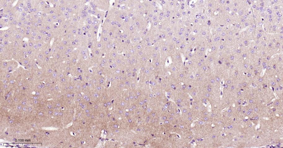 Paraformaldehyde-fixed, paraffin embedded Rat Cerebrum; Antigen retrieval by boiling in sodium citrate buffer (pH6.0) for 15 min; Antibody incubation with PKC Monoclonal Antibody, Unconjugated(bsm-62952R) at 1:200 overnight at 4°C, followed by conjugation to the bs-0295G-HRP and DAB (C-0010) staining.
