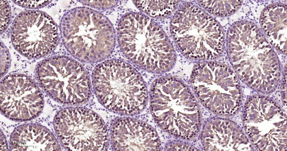 Paraformaldehyde-fixed, paraffin embedded Rat Testicles; Antigen retrieval by boiling in sodium citrate buffer (pH6.0) for 15 min; Antibody incubation with PKC Monoclonal Antibody, Unconjugated(bsm-62952R) at 1:200 overnight at 4°C, followed by conjugation to the bs-0295G-HRP and DAB (C-0010) staining.