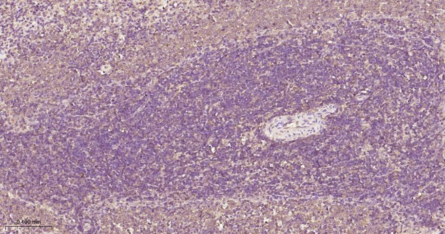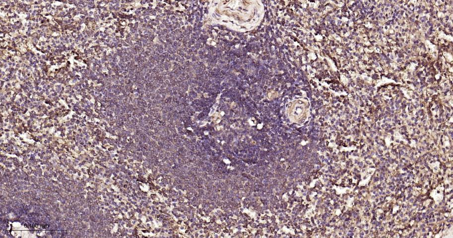 Paraformaldehyde-fixed, paraffin embedded Rat Spleen; Antigen retrieval by boiling in sodium citrate buffer (pH6.0) for 15 min; Antibody incubation with PKC Monoclonal Antibody, Unconjugated(bsm-62952R) at 1:200 overnight at 4°C, followed by conjugation to the bs-0295G-HRP and DAB (C-0010) staining.